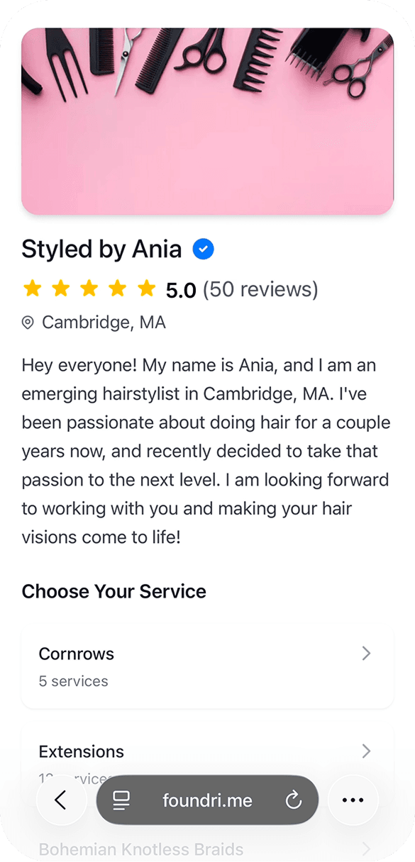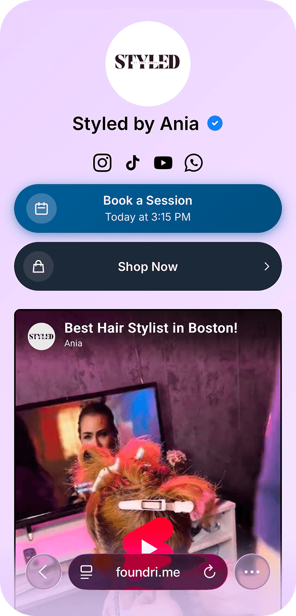 Drop your Foundri link in your bio. Clients book & pay instantly.
